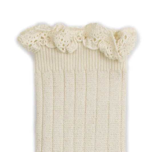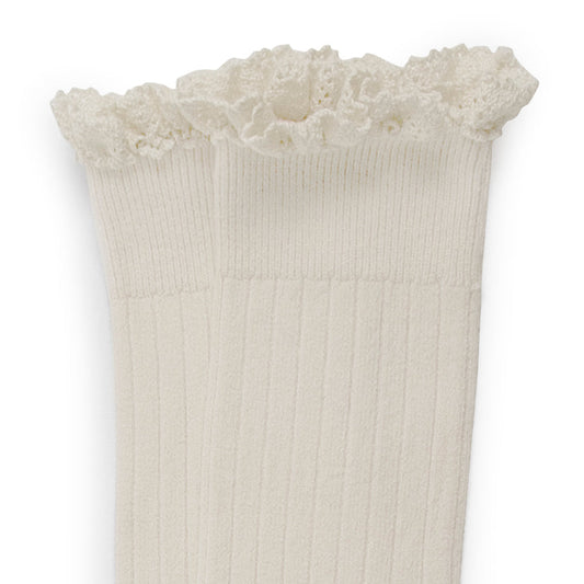 Corape deri ne gju me dantell/Marie Leonie socks blanc neige -Collegien