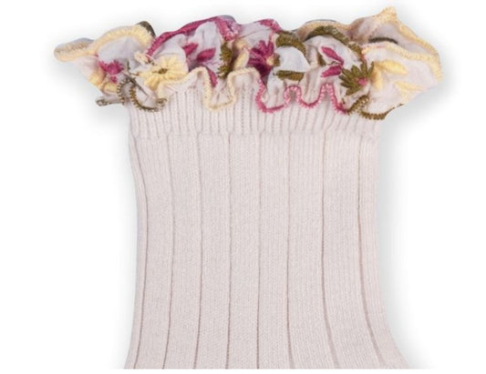 Corape Anémone deri te kyci kembes me ripa te qendisur\Anomone -Embroidered ruffle ribbed ankl-Collagien