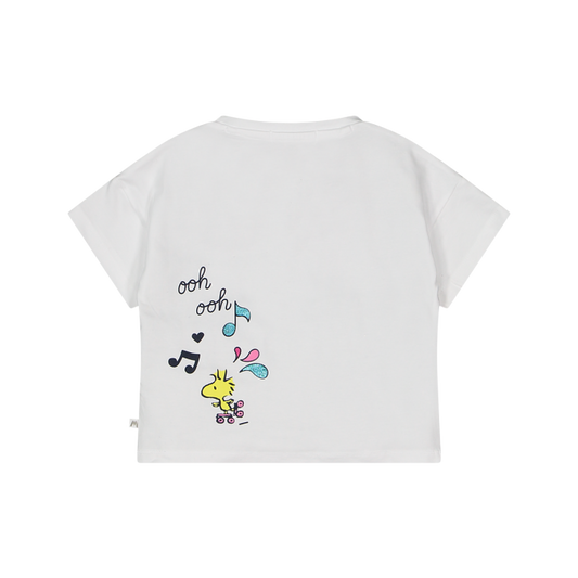 Bluze e bardhe me Snoopy per vajza/T-shirt da bambina con stampa Peneauts/Melby