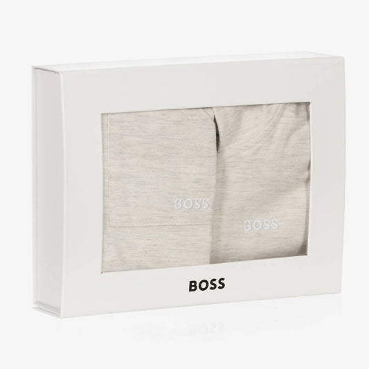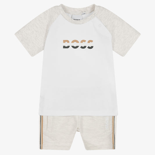 Set pantallona te shkurtra dhe bluze gri/Grey white logo shorts set-Boss