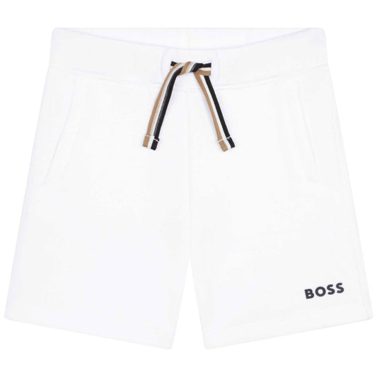 Bluze blu e erret dhe tuta te bardha/BOYS NAVY BLUE & WHITE COTTON SHORTS SET-Boss