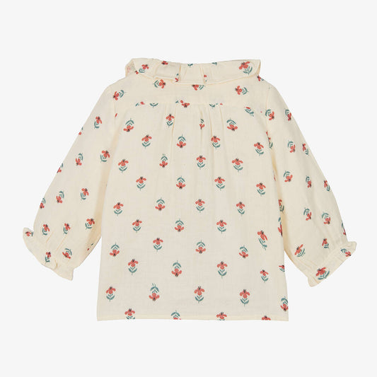 Bluze e lehte prej nape organik/girls ivory organic cotton blouse -Petit Bateau