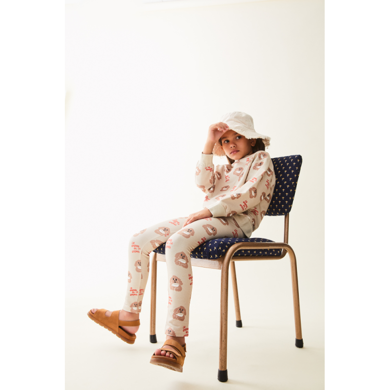 Triko maison tadaboum roberta në ngjyrë kafe, paraqet një dekolte të rrumbullakët, zbukurime me shirita dhe një printim "la crème de la crème" dhe një qen duke pirë kafe. i dizajnuar me pambuk francez.