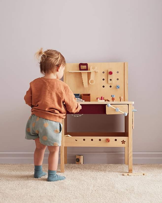 Sigurisht që do të gjeni një çekiç, çelës, sharrë dhe kaçavidë në dru të certifikuar nga FSC. Të gjitha në mënyrë që keto të mund të përdoren gjate. E pershtatshme per moshat 3 vjec+